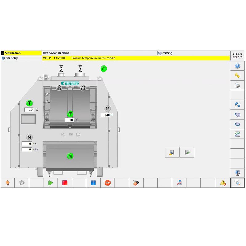 The Bühler software offers several functions. The machine can be operated as stand-alone unit or integrated into a line or plant control system. The dough can be produced according to various set points, such as temperature, applied energy or time. The logging function enables production traceability.