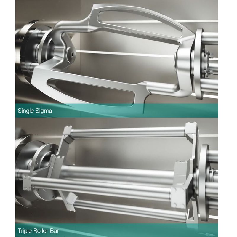 Due to its two possible design versions with triple roller bar or single sigma mixing tool, the horizontal high-speed mixer HSM can be used for the batchwise production of bread-type doughs with gluten development, such as sandwich bread, buns, sweet bread or pizza doughs or the production of soft, semi-hard and hard doughs, such as crackers, pastries, biscuits, and deposited or molded products.