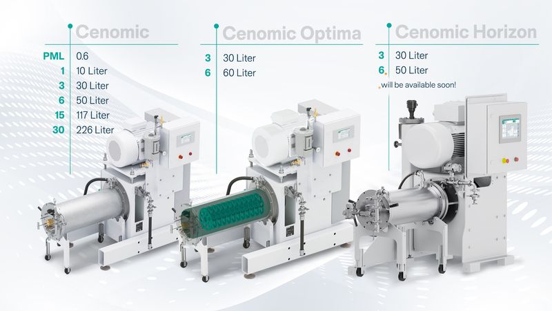 The Cenomic bead mill line delivers flexible and reliable wet grinding with excellent cooling performance and low to medium viscosity.