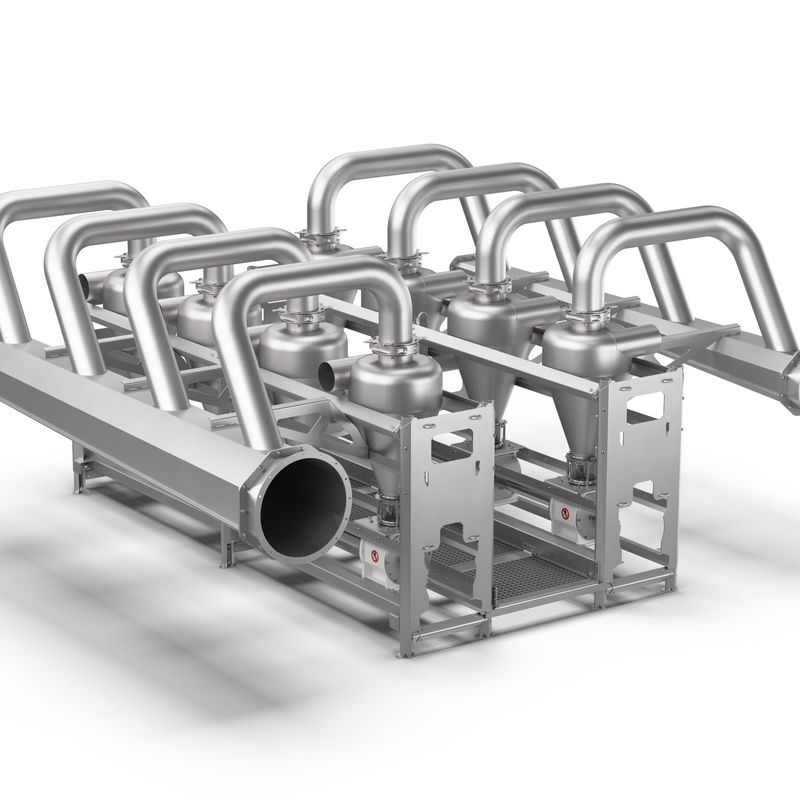 A flour mill requires several airlock systems for separating conveying air from the product consisting of airlocks, cyclones and air collecting ducts. Until now, these were delivered as single components and assembled on site. But with our airlock module for mill pneumatics, all these components are pre-assembled as one complete module, making the installation on-site up to six times faster.