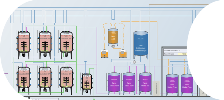 Beyond the vessel, we use SuperPro Designer to simulate the entire bioprocess – from media preparation and fermentation to downstream processing and utilities. This connects reactor behavior to plant-wide performance and economics, so you understand how your process really behaves at industrial scale.